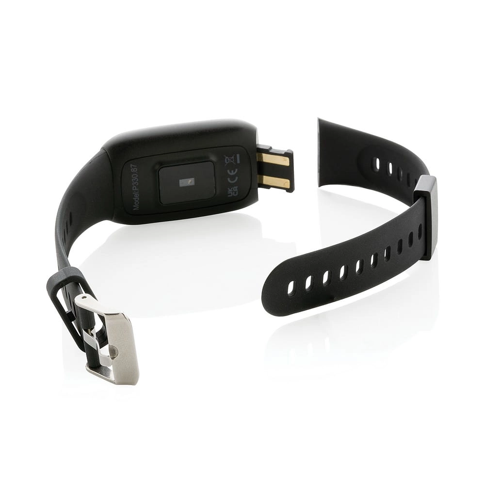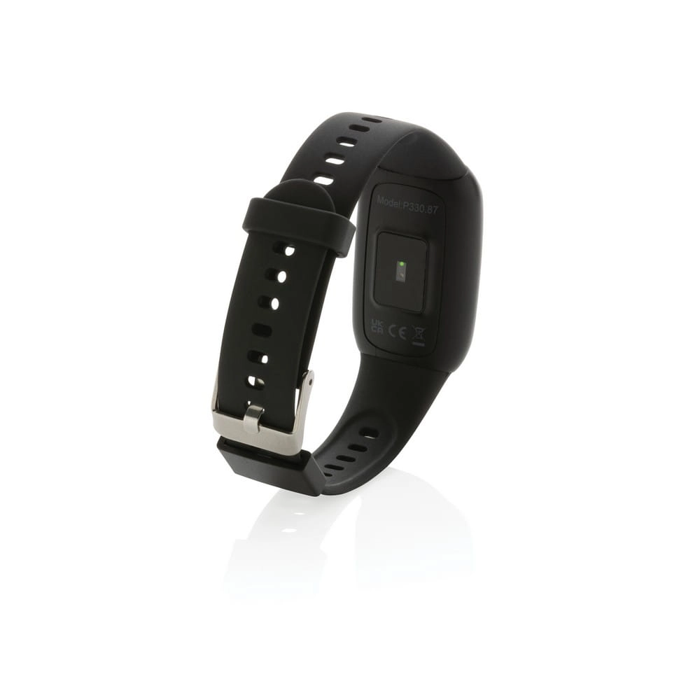 Monitor aktywności Fit Watch 1,47", BT 5.0, ekrad dotykowy OLED, wykonany z ABS z recyklingu, pasek wykonany z TPE z recyklingu, posiada certyfikat RCS (Recycled Claim Standard), całkowita zawartość materiału z recyklingu obliczona w oparciu o wagę całkowitą przedmiotu: 35%, funkcje multi sport (11 rodzajów), licznika kroków, odbierania połączeń, śledzenia tętna, mierzenia ciśnienia oraz tlenu we krwi, pomiar czasu snu, pomiar spalonych kalorii, pomiar pokonanej odległości, kontrola odtwarzania muzyki, powiadomienia z aplikacji, wodoodporność IP67, kompatybilny z Androidem 4.4 oraz IOS 8.0 lub nowszymi, czas czuwania do 20 dni, czas pracy do 10 dni, w pudełku kraftowym z certyfikatem FSC® mix, nie zawiera PVC