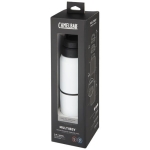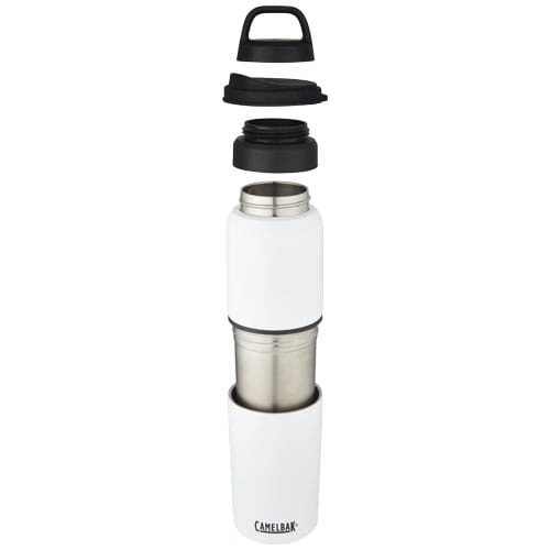 Wielozadaniowa butelka dla podróżujących osób dbających o ekologię i wszechstronność. MultiBev to naczynie 2 w 1, które służy zarówno jako bidon, jak i odczepiany kubek podróżny. Do porannej kawy, wody w ciągu dnia i na nocne wypady na piwo z przyjaciółmi. Pij. Dziel się. Opłucz i powtórz. Dwuścienna konstrukcja ze stali nierdzewnej izolowanej próżniowo utrzymuje ciepło lub zimno napojów przez wiele godzin. Proszkowe wykończenie i antypoślizgowa silikonowa podstawa tworzą bardzo trwałą powłokę zewnętrzną. Odporna na przeciekanie zakrętka Pak™ pozwala schować zwiniętą i złożoną pokrywkę poza zasięgiem wzroku, dopóki nie zostanie połączona z wyjmowanym kubkiem, lub przechowywać małe, niezbędne drobiazgi, takie jak torebka herbaty lub przekąski. Łatwa do czyszczenia. Bez BPA, BPS i BPF.
