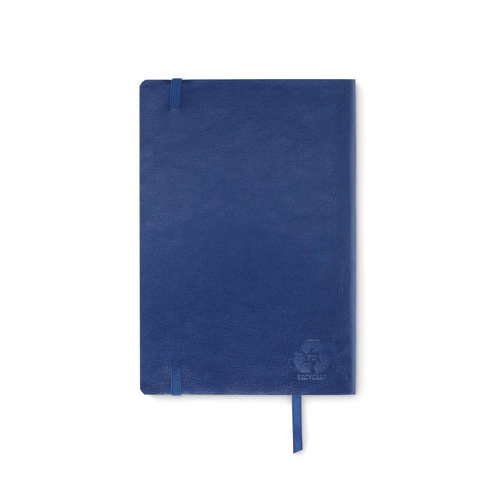 Notatnik A5 z miękką okładką z PU z recyklingu. 160 stron w linie z papieru z recyklingu (80 kartek). Dopasowany elastyczna opaska i zakładka z tasiemki. Rozszerzana kieszeń wewnętrzna z tyłu.