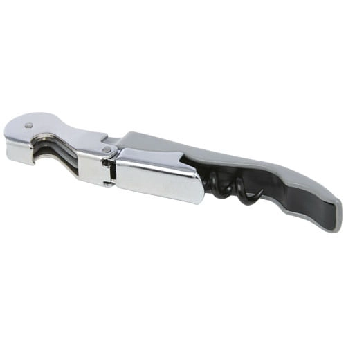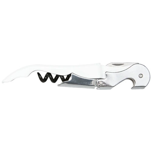 Nóż kelnerski ze stali nierdzewnej z kolorowym korpusem, wyposażony w korkociąg, przecinak do folii i otwieracz do butelek. Dzięki dwustopniowej konstrukcji można łatwo wyjąć korek z butelki.