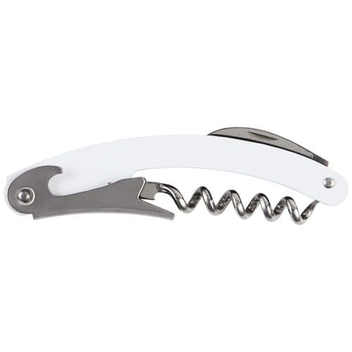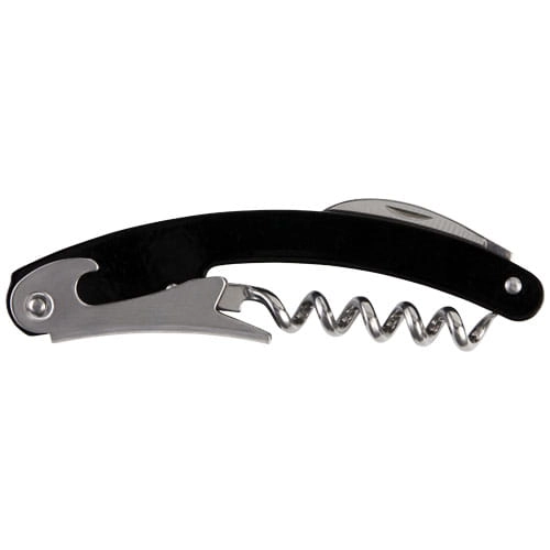 Nóż kelnerski ze stali nierdzewnej z kolorowym korpusem, wyposażony w przecinak do folii i otwieracz do butelek.