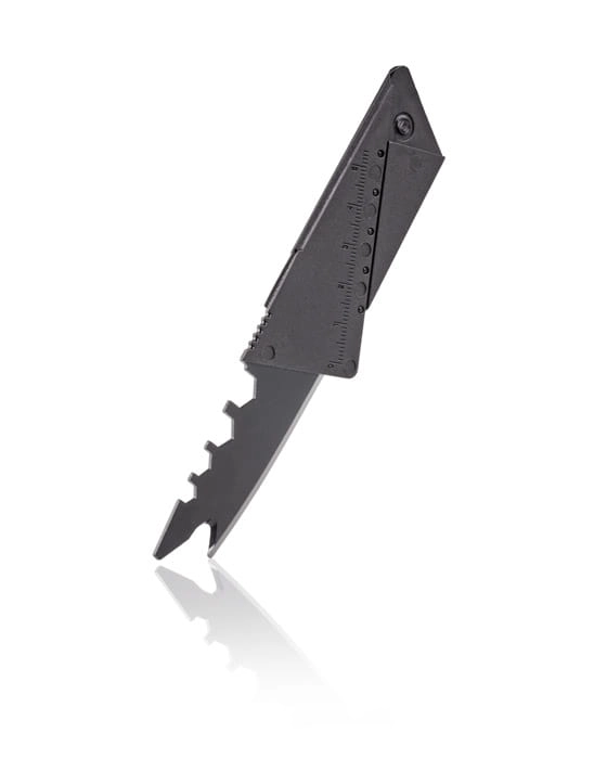 Nóż składany KLINGO to rozwiązanie w sytuacji, gdy nóż jest niezbędny a nie mamy przy sobie. Dzięki wymiarom i kształcie bliskim karty kredytowej ten gadżet zmieści się do portfela, dzięki czemu zawsze będzie pod ręką. Przemyślana budowa pozwala na złożenie ostrza w kilka sekund. Funkcje: linijka, nóż, klucze (4 rozmiary), otwieracz do puszek, przecinak do drutu.