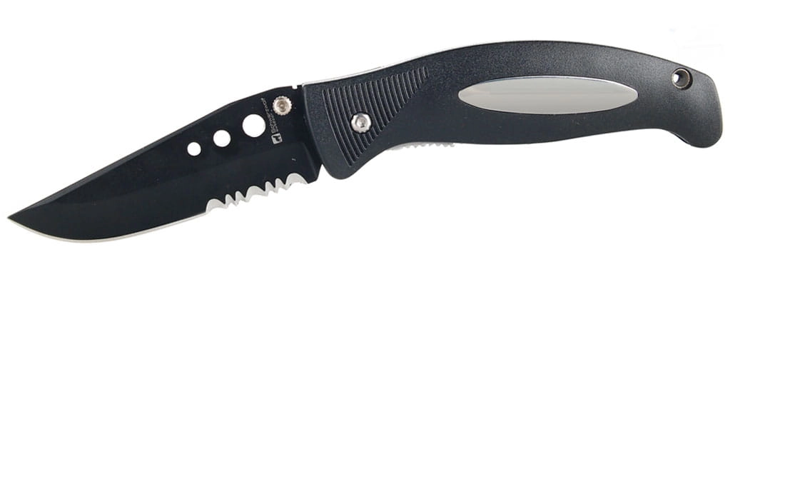 Składany nóż Schwarzwolf z plastikową rękojeścią, klipsem oraz blokadą bezpieczeństwa. Materiał: stal nierdzewna i plastik.