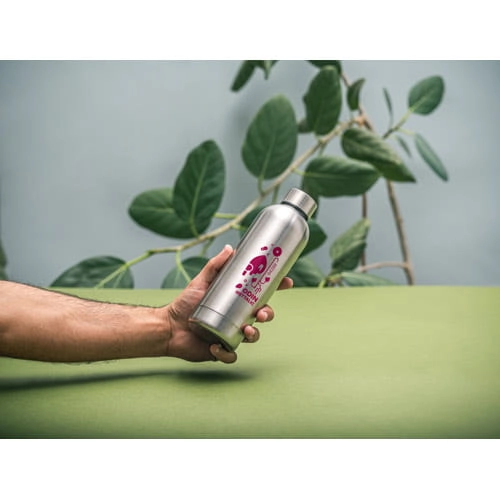 Butelka ze stali nierdzewnej (90% z recyklingu) z podwójną ścianką. Matowe wykończenie i izolowane próżniowo podwójne ścianki. Pojemność do 550 ml. Dostarczana w pudełku prezentowym z papieru typu kraft