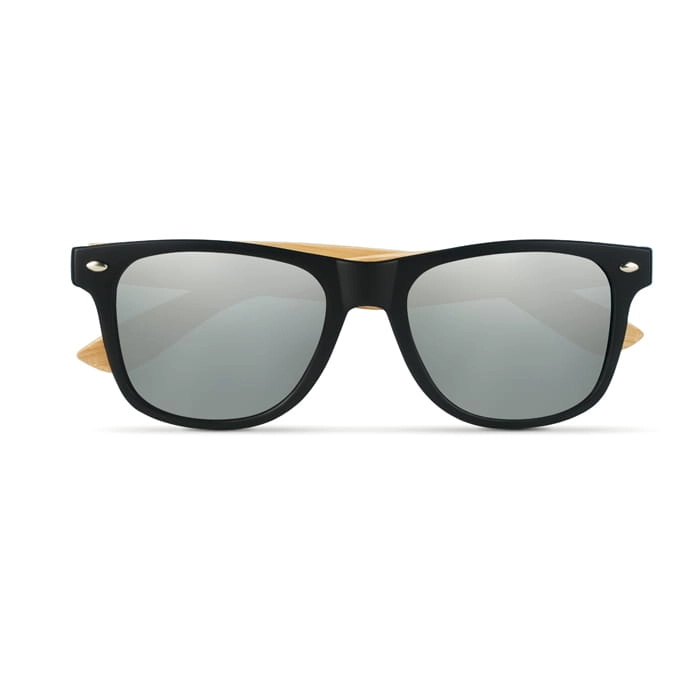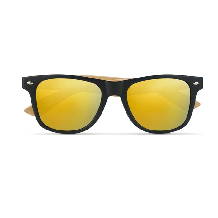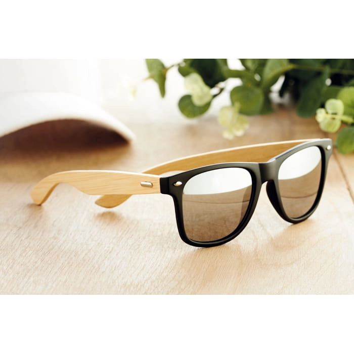 Okulary przeciwsłoneczne w stylu vintage z bambusowymi zausznikami i ramką PC. Kolorowe soczewki. Ochrona UV400.