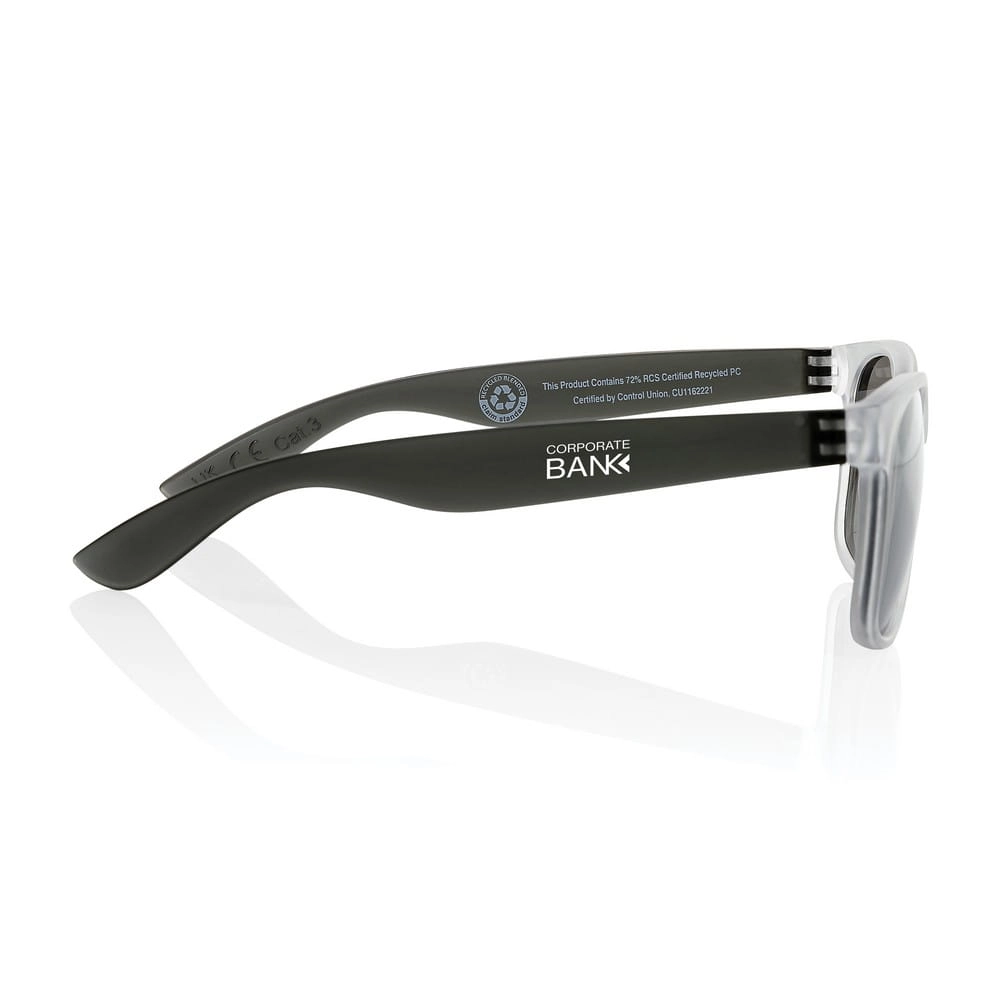 Okulary przeciwsłoneczne z filtrem UV400 i CAT 3, zgodne z normą EN ISO 12312-1, wykonane z PC z recyklingu z certyfikatem RCS, pudełko z kraftowego papieru w komplecie z certyfikatem FSC®, całkowita zawartość materiałów z recyklingu obliczona na podstawie wagi całkowitej produktu: 72%
