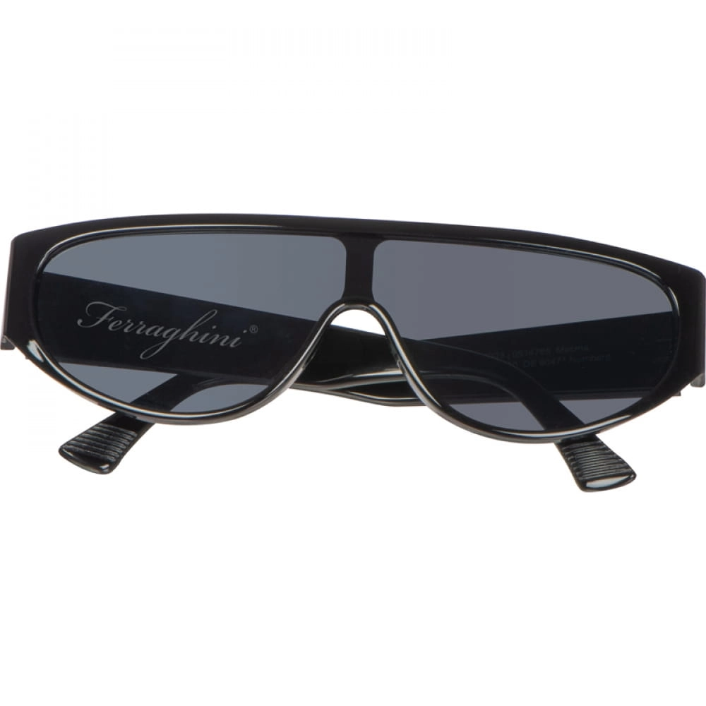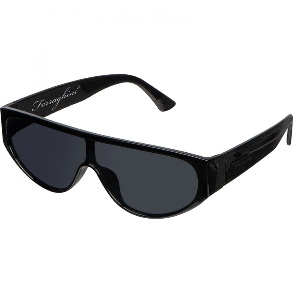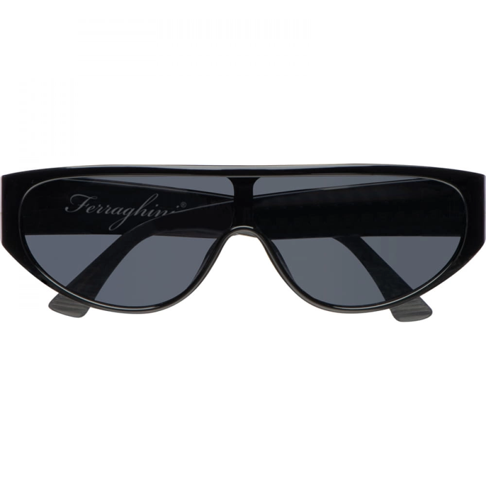 Okulary przeciwsłoneczne marki Ferraghini, z czarnymi szkłami, wykonane z RPET. Ochrona UV400, filtr 3 kategorii. Okulary zapakowane w wysokiej jakości etui.