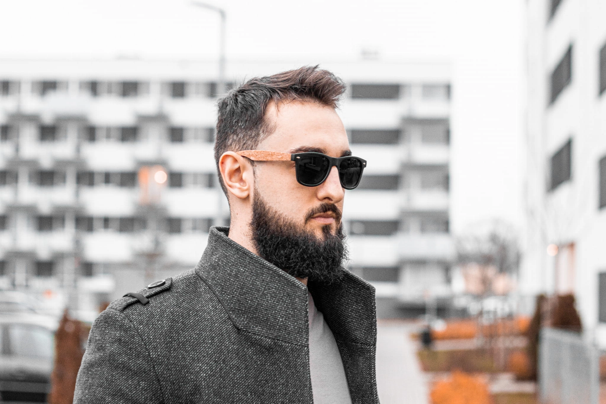 Okulary przeciwsłoneczne z korkowymi zausznikami. Szkła z ochroną UV 400 oraz filtrem kategorii 3.