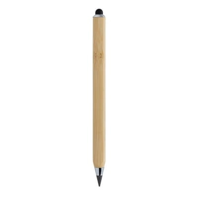 Ołówek, linijka, touch pen, wykonany z bambusa z certyfikatem FSC®, dzięki wykorzystaniu specjalnej wolnościerającej się grafitowej końcówki długość pisania ołówka to około 20 000 metrów w porównaniu z tradycyjnym ołówkiem którego długość pisania to około 200 metrów, notatki można zmazać standardową gumką do mazania