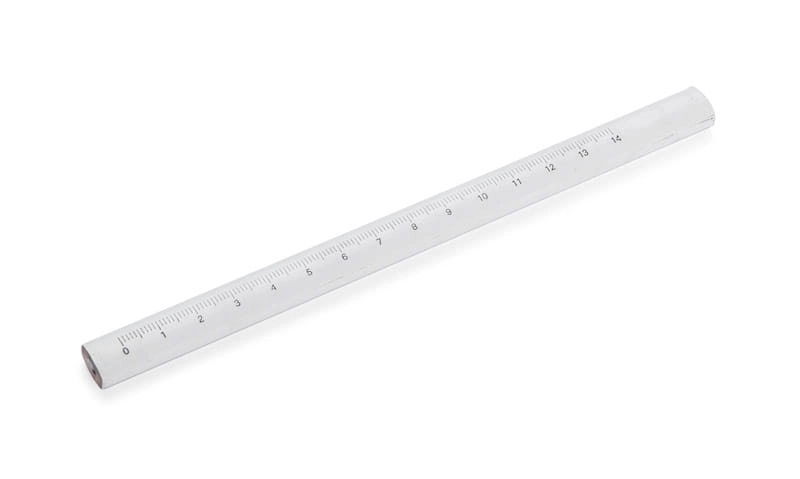 Klasyczny ołówek stolarski z linijką wykonany z drewna. Twardość rysika: F