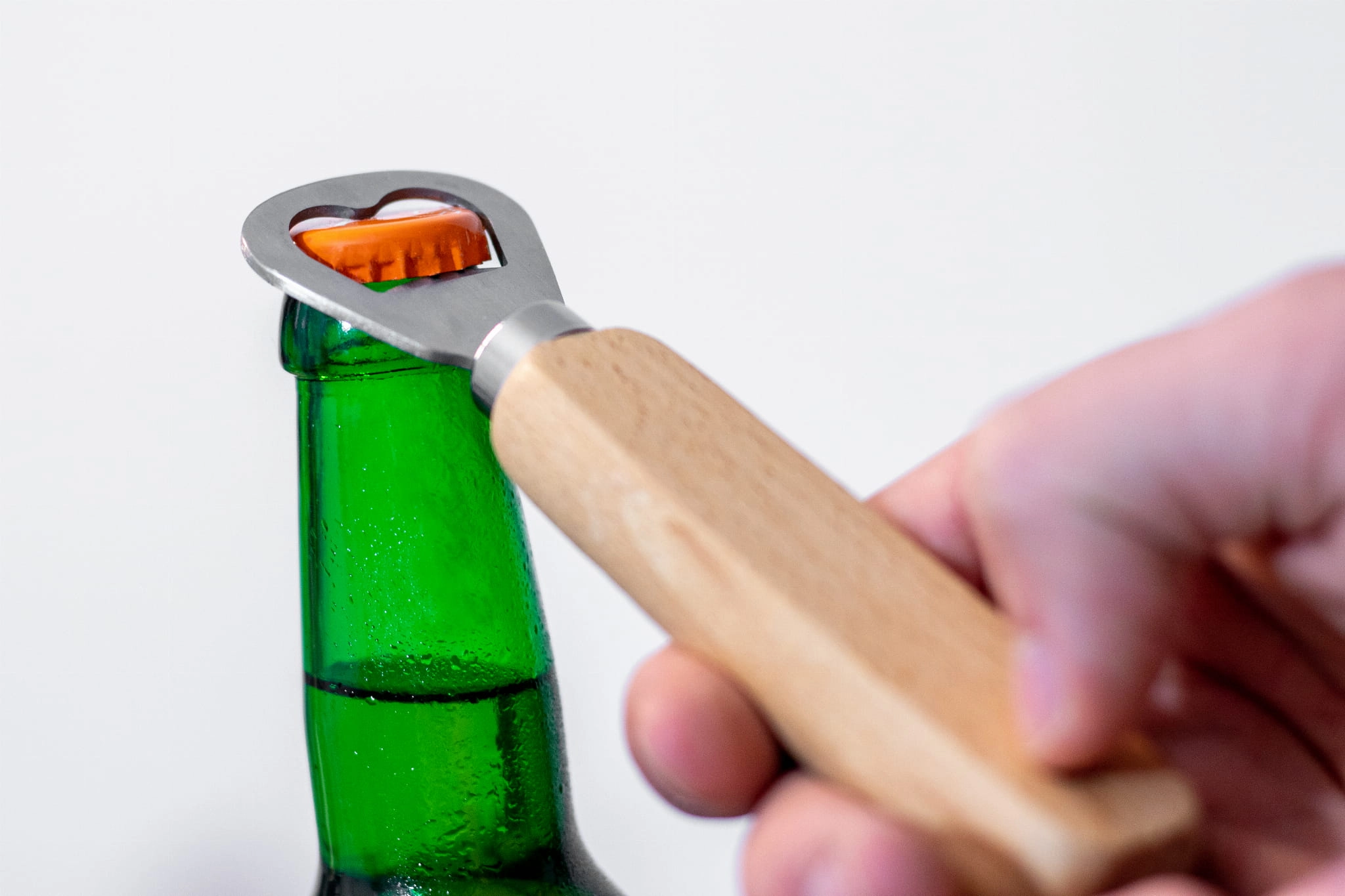 Klasyczny otwieracz do butelek z drewnianym uchwytem.