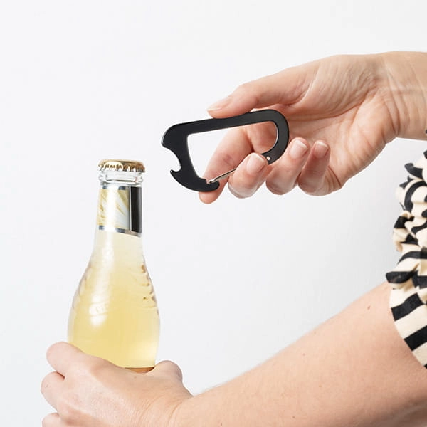 Karabińczyk. Aluminium. Z otwieraczem do butelek. Nie nadaje się do wspinaczki.