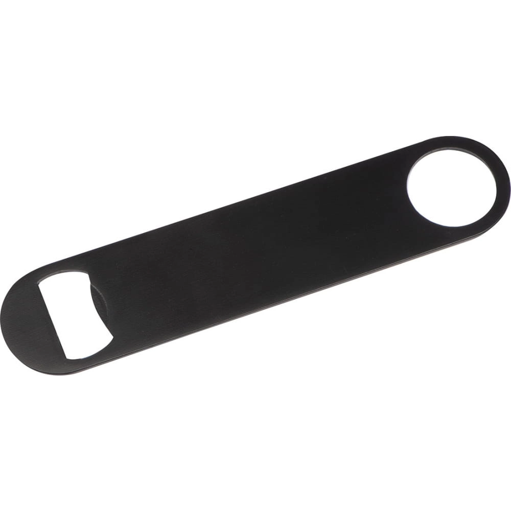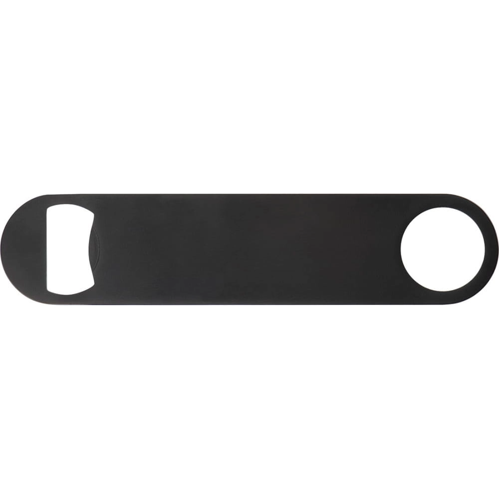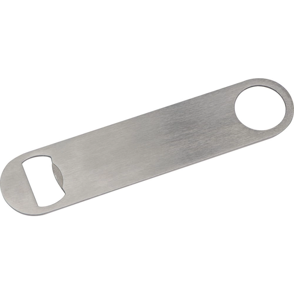 Duży otwieracz do butelek wykonany ze stali nierdzewnej.
