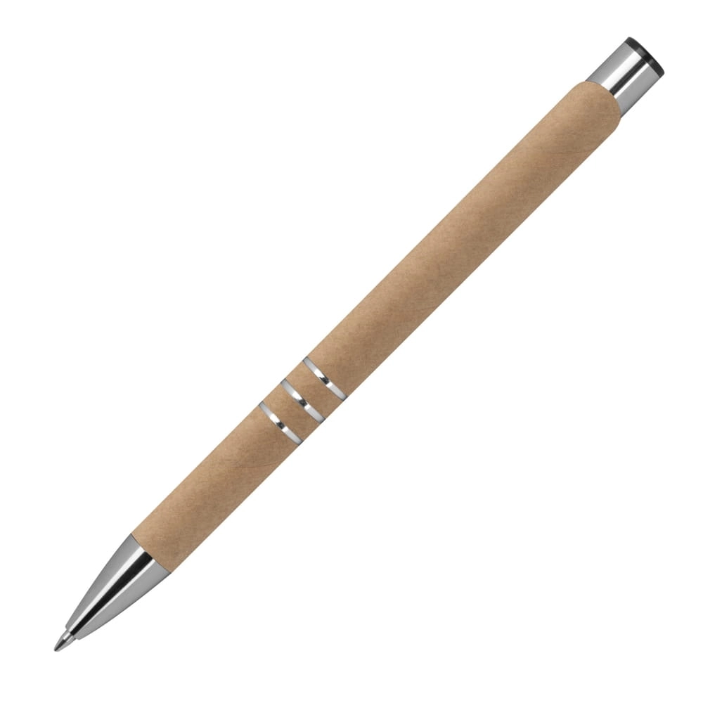 Długopis wykonany z papieru pochodzącego z recyklingu, z dużym niebieskim wkładem.