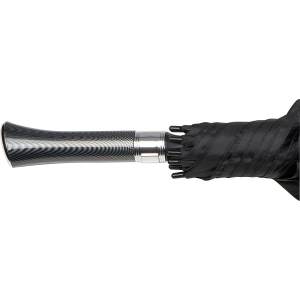 Wysokiej jakości parasol automatyczny, wykonany z 190T Pongee, z czarnym stelażem z włókna szklanego. Zapakowany w dopasowane etui.