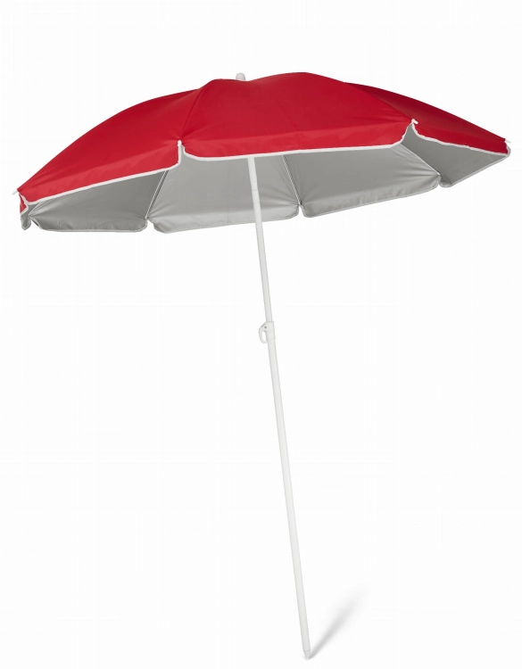 Parasol plażowy. 210T. Posiada srebrny spód oraz mechanizm uchylny. Dostarczany w etui.