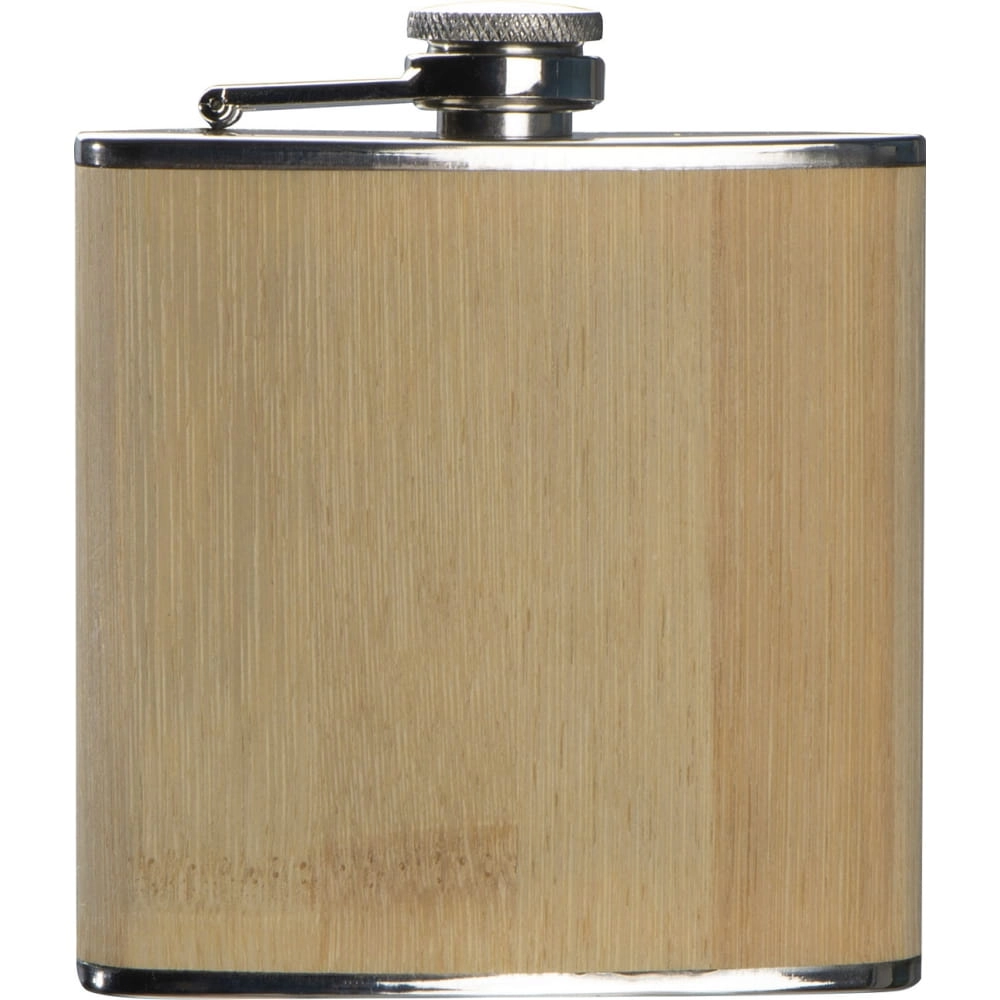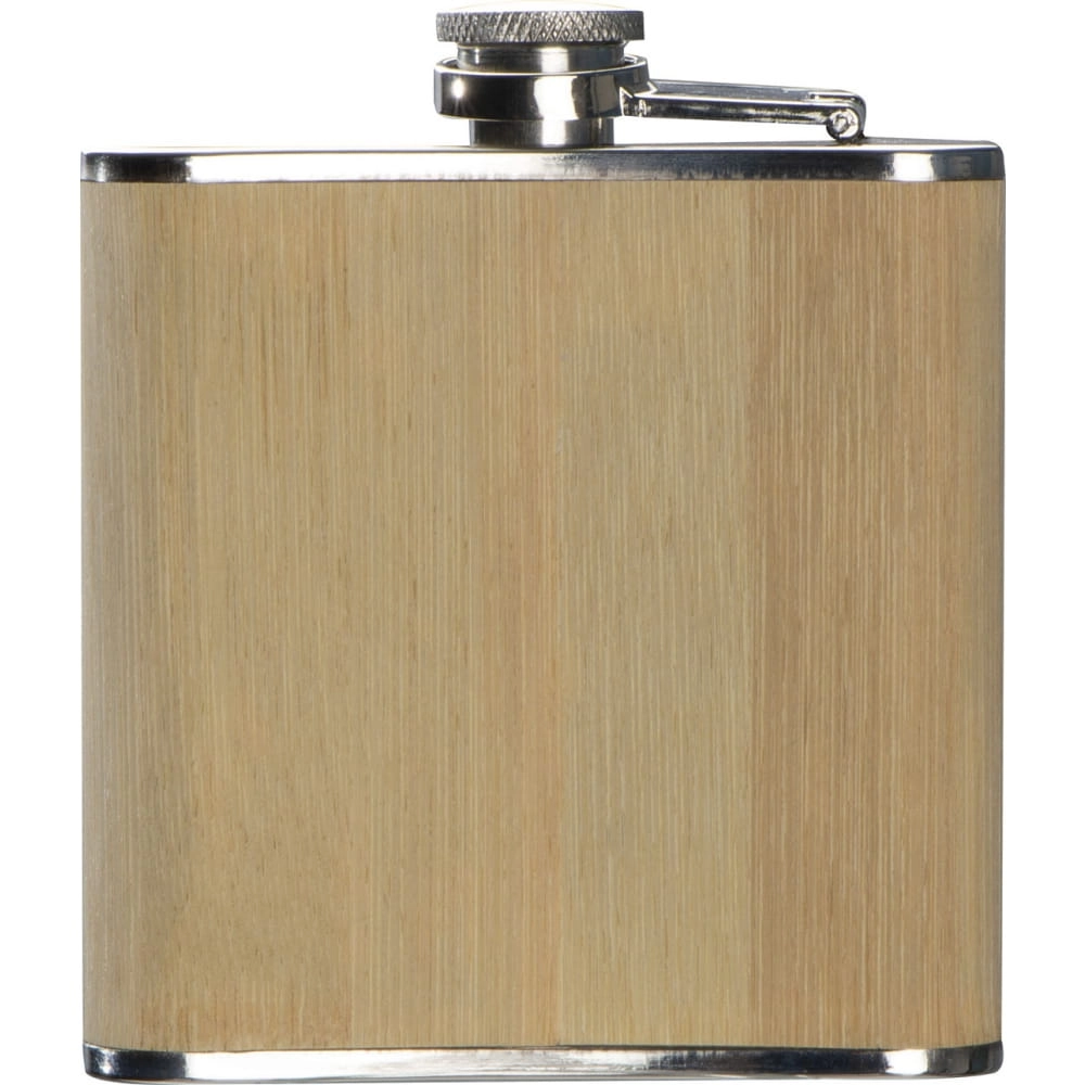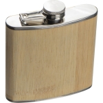 Piersiówka wykonana ze stali nierdzewnej w bambusowej obudowie, pojemność 170 ml.