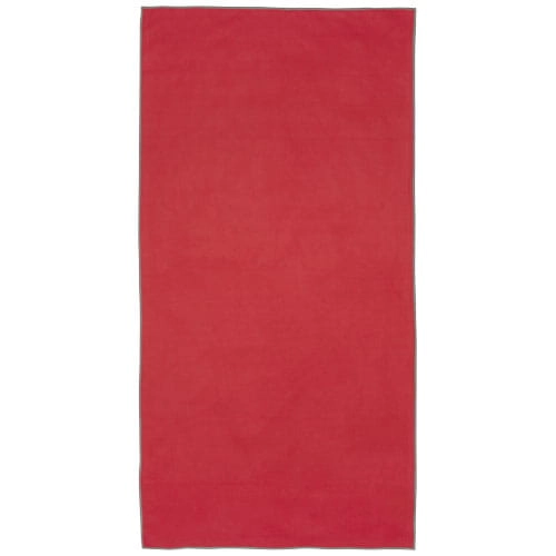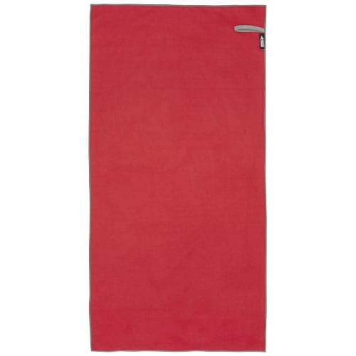 Pieter bardzo chłonny, lekki i szybko schnący ręcznik sportowy wykonany z trwałego i niezwykle miękkiego materiału. Po złożeniu i zabezpieczeniu elastyczną opaską ręcznik zmniejsza się do niewielkich rozmiarów, dzięki czemu nadaje się do zabrania na siłownię, basen lub na wędrówkę z plecakiem albo kemping. Ręcznik ma wymiary 50 x 100 cm i jest wykonany w 90% z poliestru pochodzącego z recyklingu z certyfikatem GRS i w 10% z nylonu. Można go prać w pralce w temperaturze 40°C. Dostarczany z woreczkiem do przechowywania (17 x 13 cm) wykonanym z plastiku PET z recyklingu, który zapewnia doskonałe miejsce na nadruk logo.