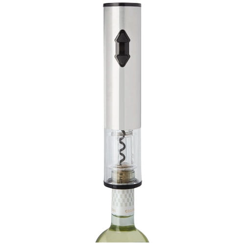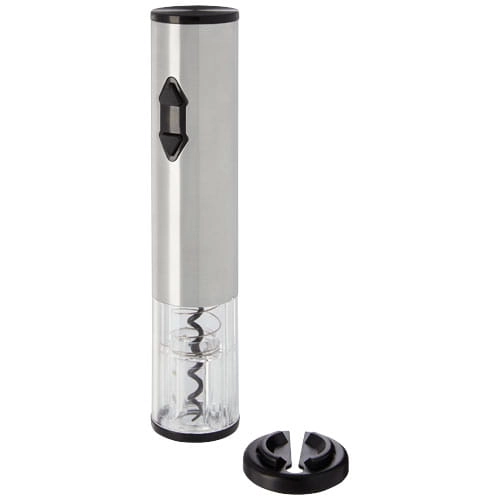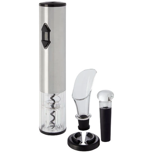 Elektryczny otwieracz do wina w połączeniu z obcinaczem do folii, nalewakiem i zatyczką. Działa na 4 baterie AA (nie dołączone do zestawu).