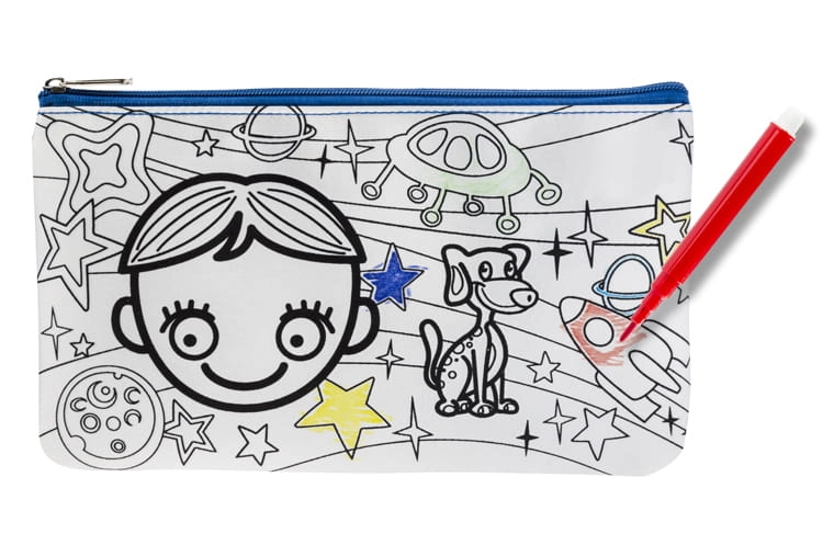 Piórnik ozdobiony grafiką do samodzielnego pokolorowania. Upominek, któyy potrafi zaangażować i bawić. W zestawie dołączone pisaki w 6 kolorach. Piórnik jednokomorowy zapinany na zamek.