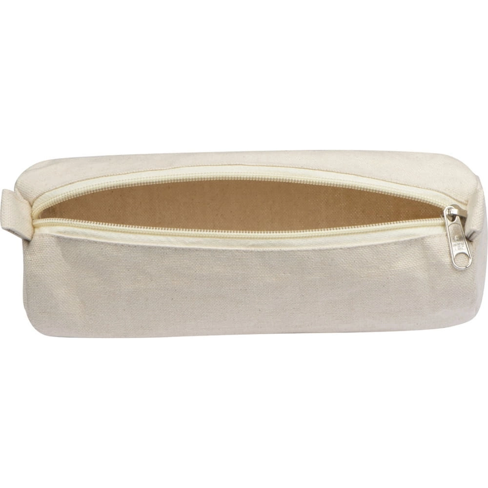 Pojemny piórnik wykonany z bawełny, zamykany na zamek błyskawiczny.