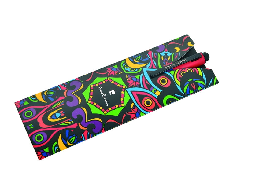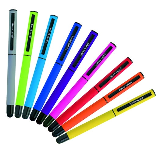 Pióro kulkowe wykonane z aluminium w modnych, intensywnych kolorach. Posiada przyjemną w dotyku powierzchnię soft touch i czarne detale oraz funkcję touch pen. Wyposażone w wysokiej jakości niemiecki wkład Schneider, piszący na niebiesko z końcówką 0,5 mm. Zapakowane w eleganckie etui prezentowe z certyfikatem autentyczności Pierre Cardin.