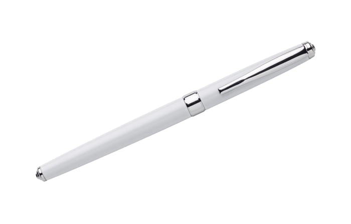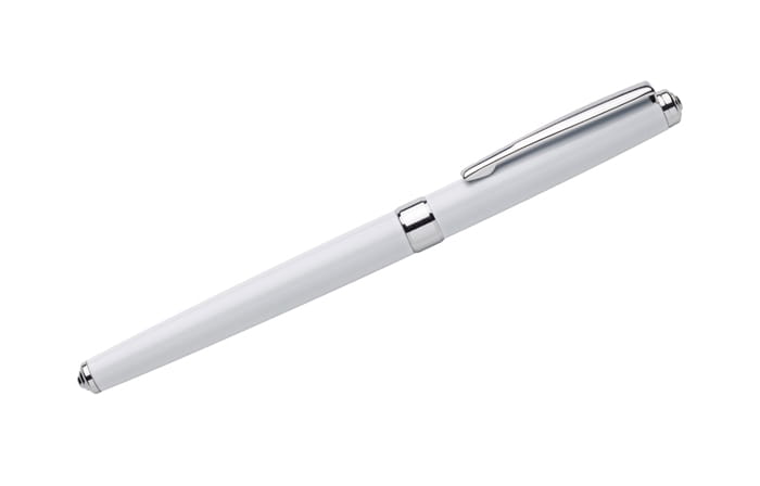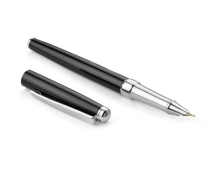 NEVADA to klasyczne, eleganckie pióro wieczne wykonane z metalu. Korpus pokryty farbą. Wykończenia chromowane. Stalówka gustownie schowana wewnątrz. Pióro wyposażone w tłoczek. Możliwość stworzenia zestawu piśmienniczego z długopisem o tym samym wzornictwie.