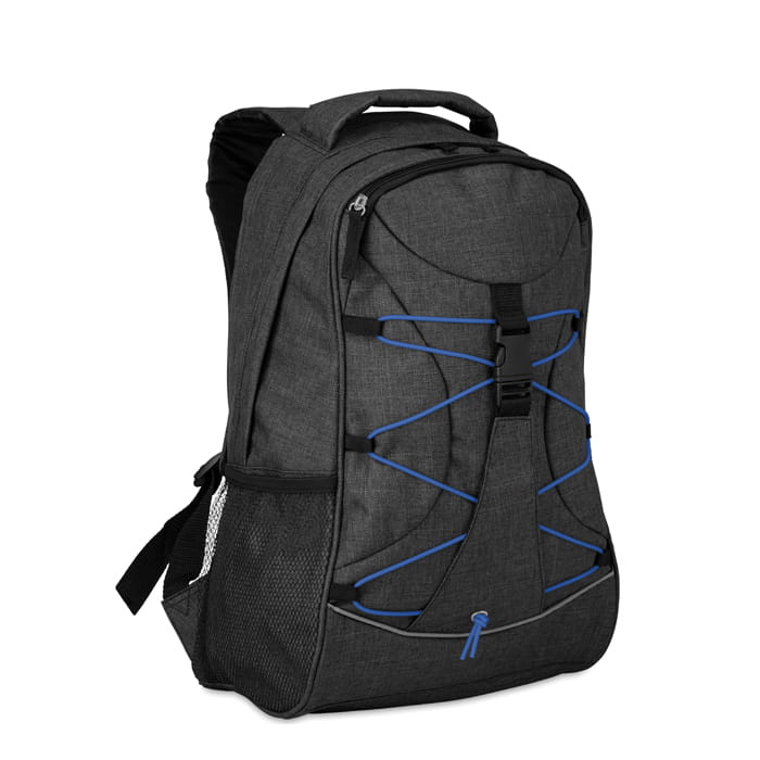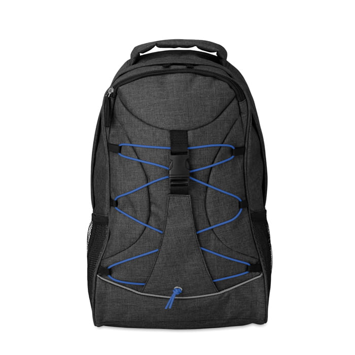 Plecak wykonany z 2-kolorowego poliestru 600D z kontrastującym kolorowym sznurkiem świecącym w ciemności. Siatkowe kieszenie po obu stronach.