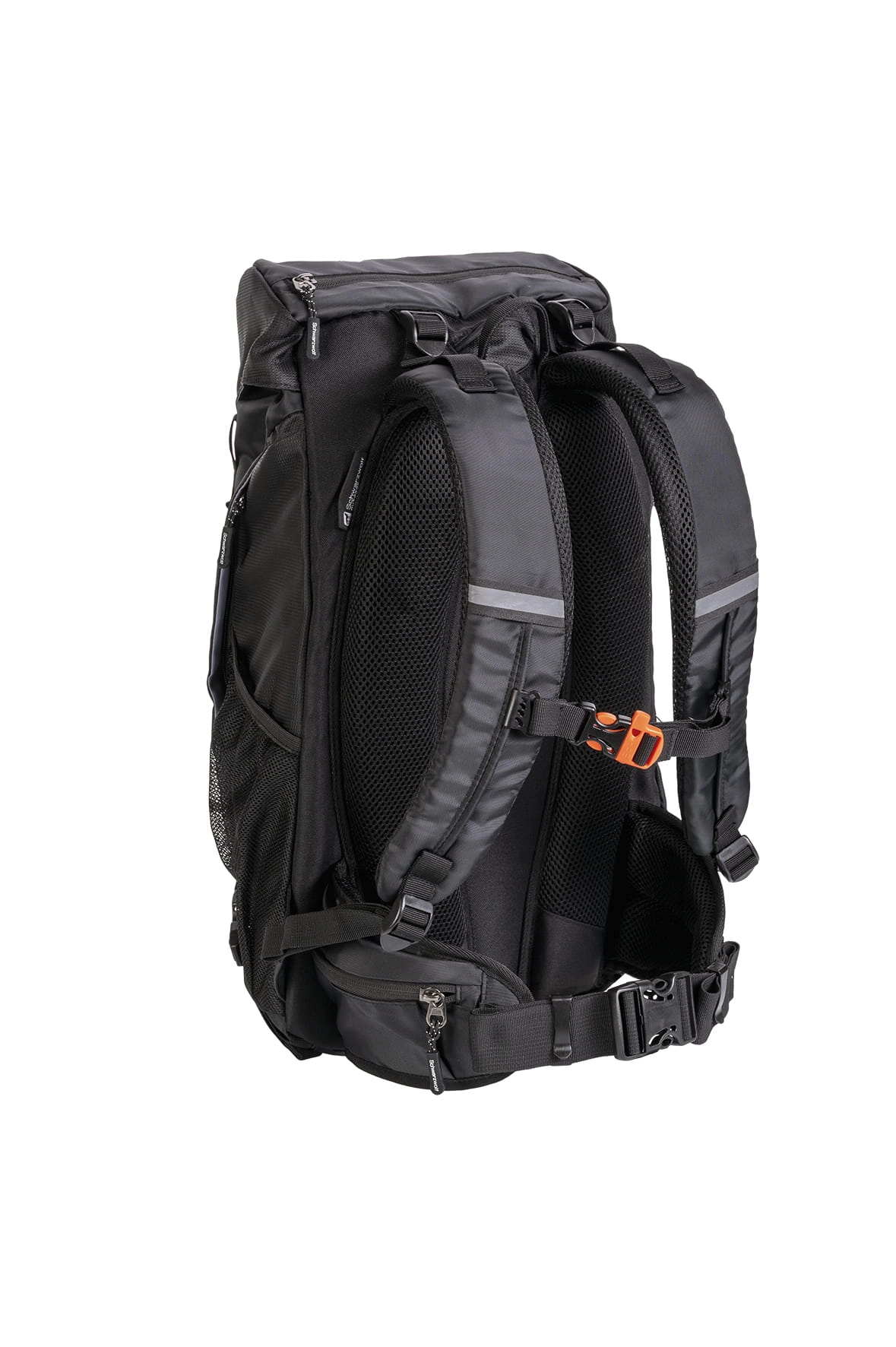 Plecak turystyczny Schwarzwolf odpowiedni na kilkudniowe podróże. Wyposażony w system ochronny pleców oraz watowane szelki, dzięki czemu plecak można wygodnie dopasować. Posiada dużą kieszeń główną z przegrodą na laptopa oraz dodatkowe kieszenie takie jak: boczna kieszeń z zamkiem i kieszeń z siateczki na drugim boku. Pas piersiowy wyposażony jest w gwizdek ratunkowy. W zestawie również wodoodporna osłona na plecak dostępna w dolnej kieszeni.