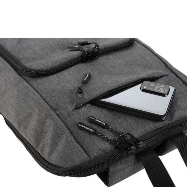Lekki i kompaktowy plecak wyposażony w dużą komorę główną z wyściełaną przegródką na laptopa, małą kieszonkę z przodu, zamykaną na zamek oraz dużą kieszeń z wieloma przegródkami (małą kieszonką, kieszonką z siatki, karabińczykiem oraz organizerem na długopisy i dokumenty). Pojemność: 15l.