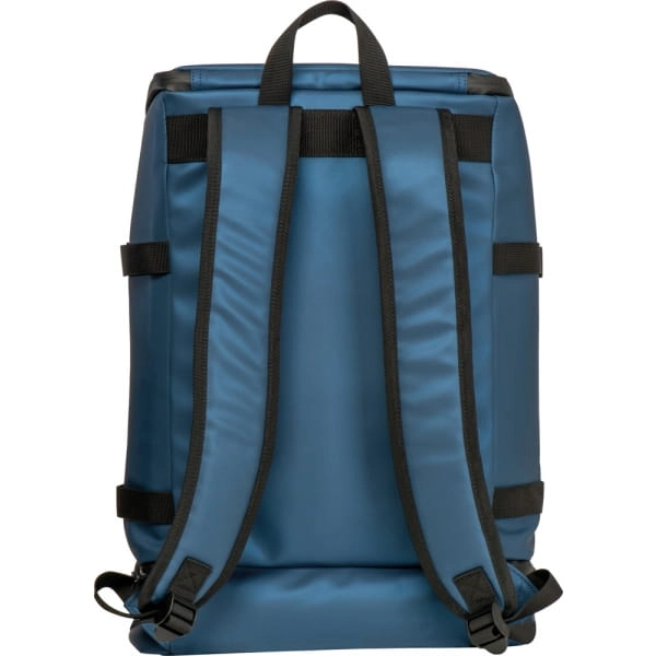 Plecak chłodzący z dużą komorą główną i dodatkową przegródką w dnie, zamykaną na zamek. Boczne paski mocujące zapewniają stabilizację plecaka.