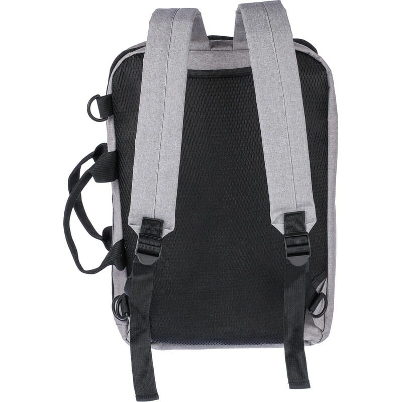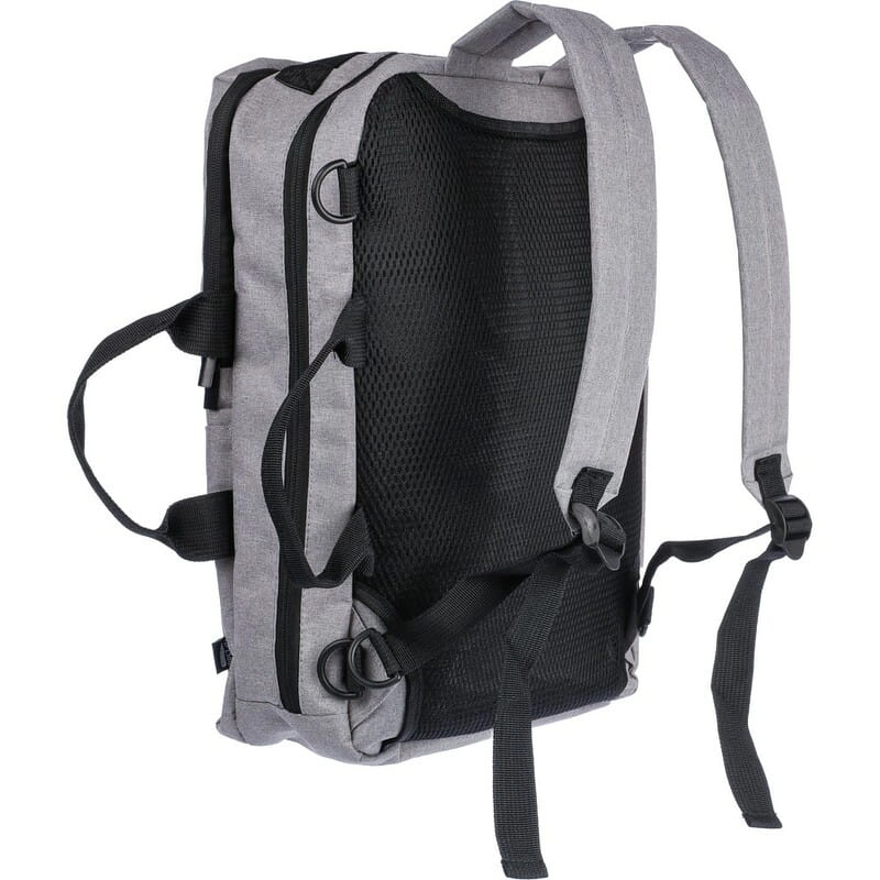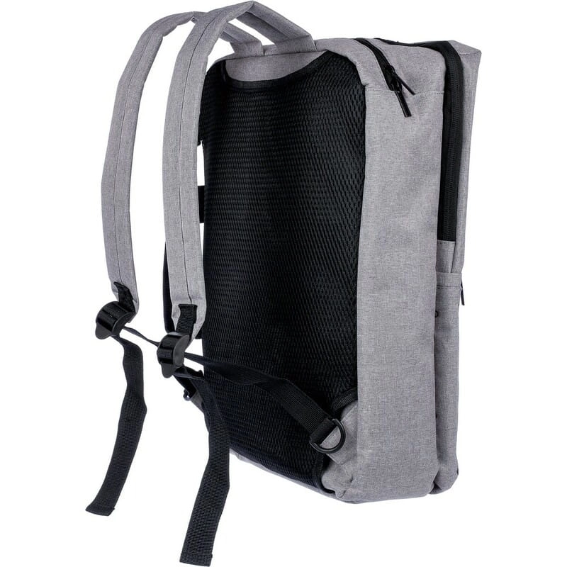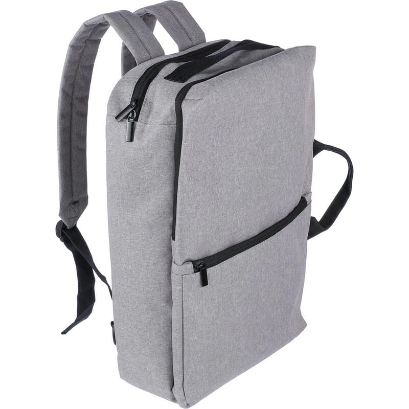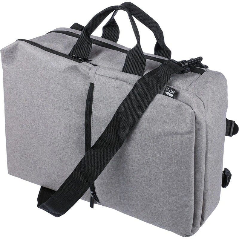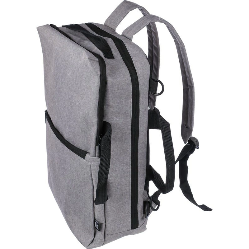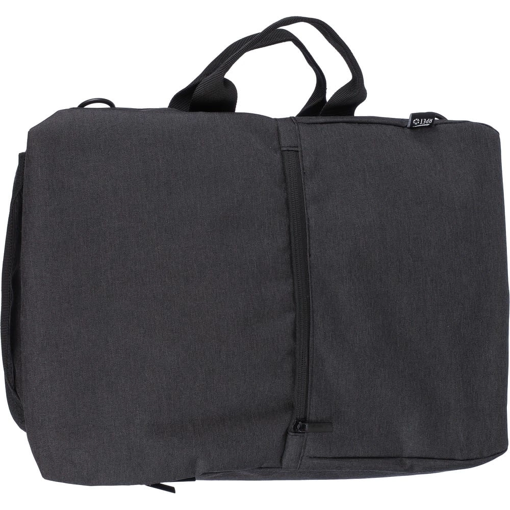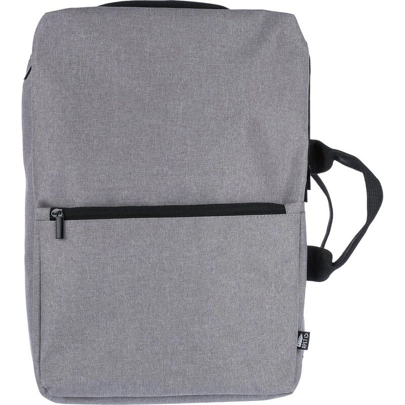 Plecak na laptopa 15" z podszewką wewnątrz, pojemność plecaka to 1 l, posiada uchwyt do noszenia w dłoni oraz dwa boczne uchwyty, dwie duże przegrody zapinane na zamek, w tym jedna z przegrodą na laptopa 15" zapinaną na rzep, z przodu mała kieszonka zapinana na zamek, wewnątrz oddzielny regulowany pasek na ramię do zamocowania na plastikowych haczykach (łącznie 4 plastikowe haczyki), za wyściełanym tyłem ukryte są dwa regulowane paski na ramiona, które umożliwiają noszenie torby jak plecaka, sprawdzi się w podróży, ikona RPET na metce, produkty wykonany z RPET, poliestru, siatki i pianki