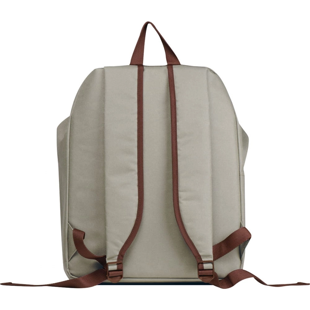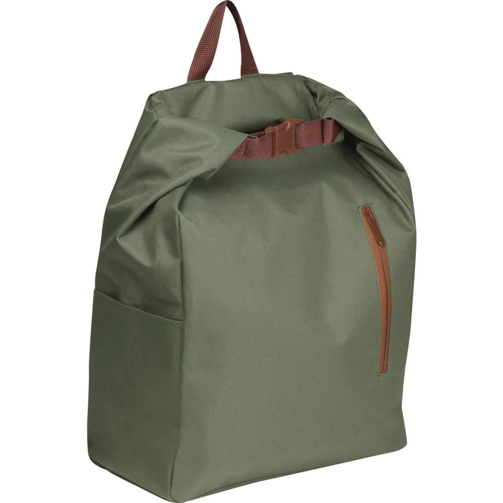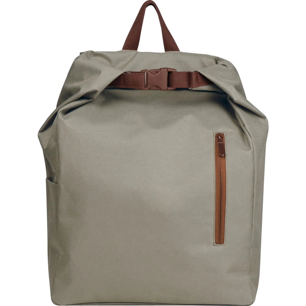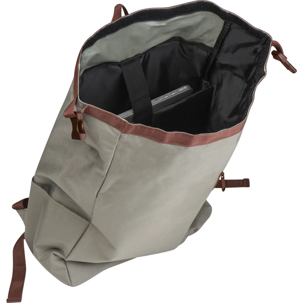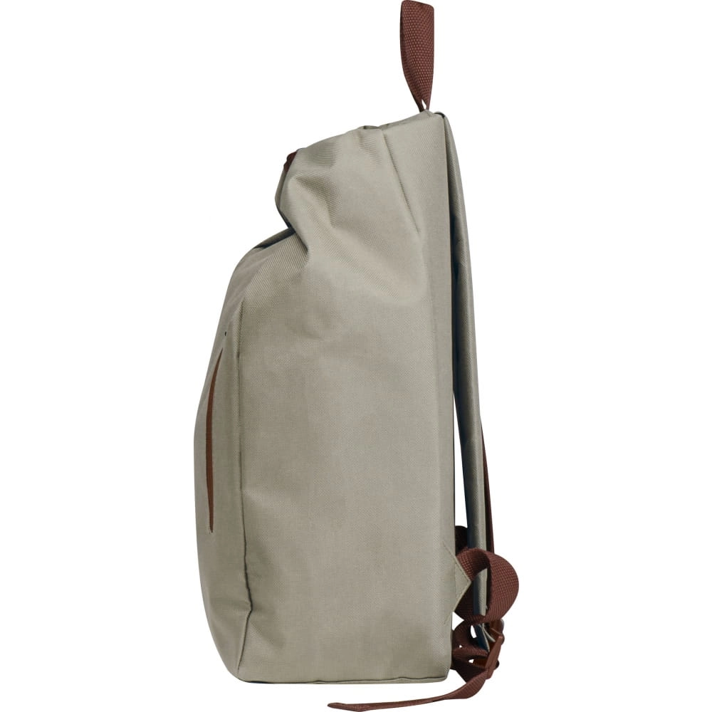 Plecak wykonany z RPET z dedykowaną przegrodą na laptopa, przednią kieszenią na zamek błyskawiczny i rolowanym zamknięciem.