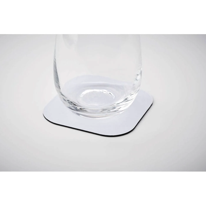 Podstawka sublimacyjna z poliestru z czarną gumową podstawą.
