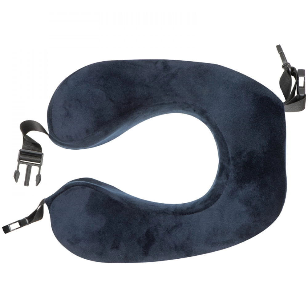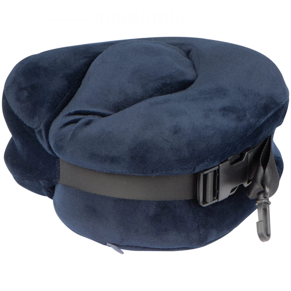 Poduszka podróżna wykonana z pluszu i pianki zapamiętującej kształt.