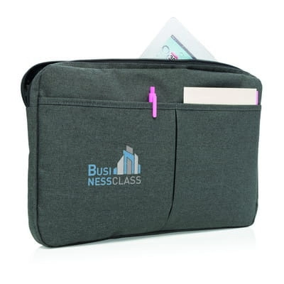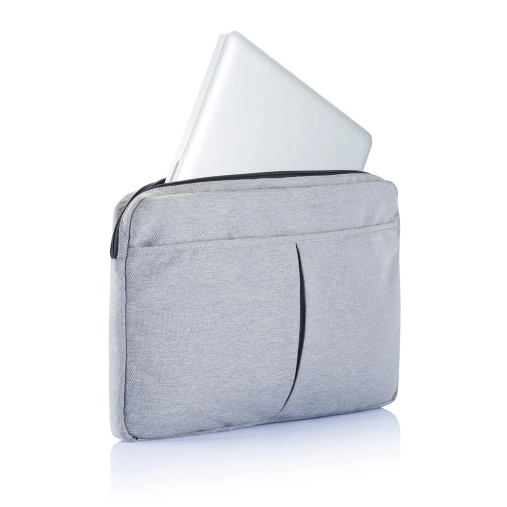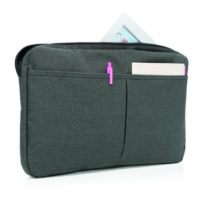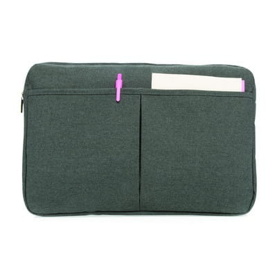 Pokrowiec na laptopa 14" (oraz niektóre cieńsze modele 15"), wykonany z poliestru 600D, posiada miejsce na ładowarkę, kable, klucze i inne akcesoria, nie zawiera PVC