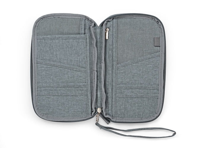 Wykonany z poliestru 600D portfel MARCO to niezbędnik każdego podróżnika. Posiada wiele różnej wielkości przegródek i jest zapinany na zamek z zawieszką ułatwiającą trzymanie portfela.
