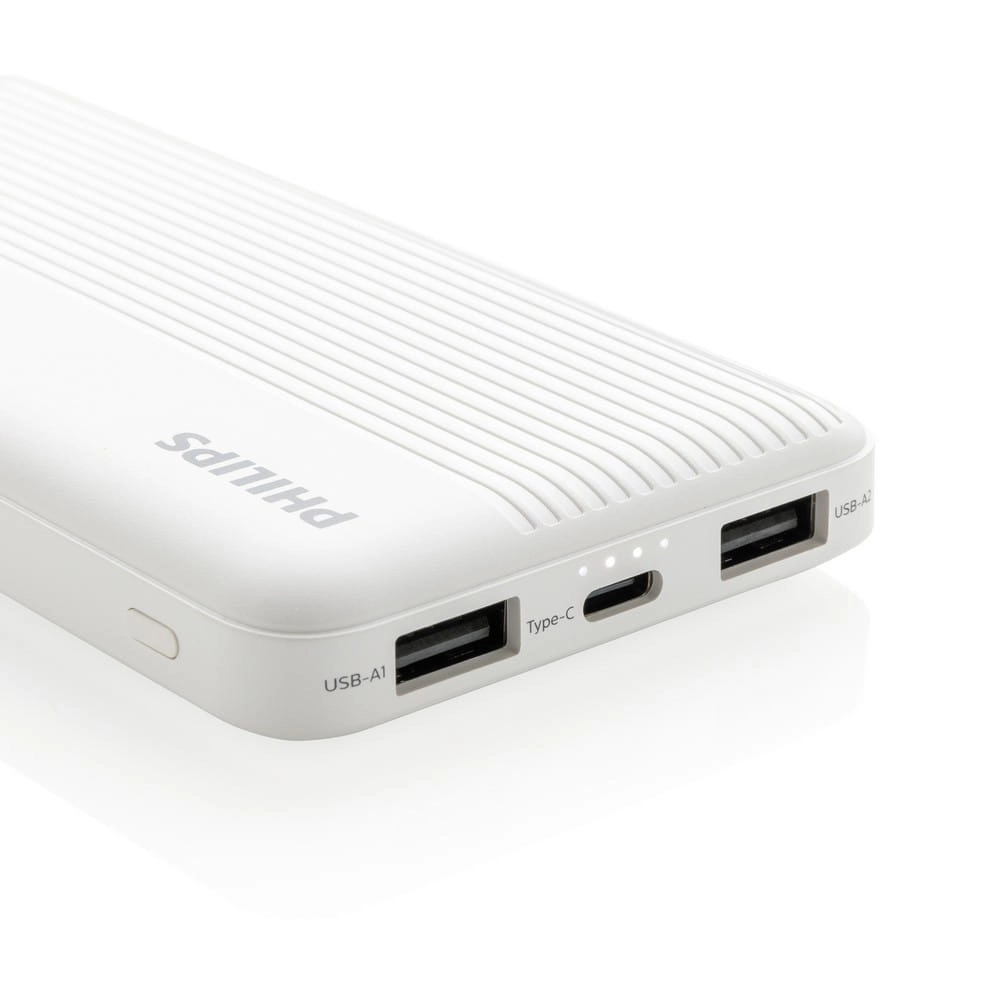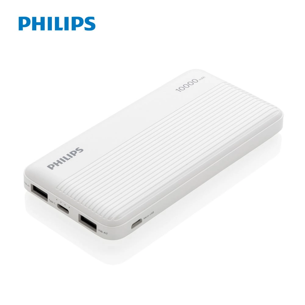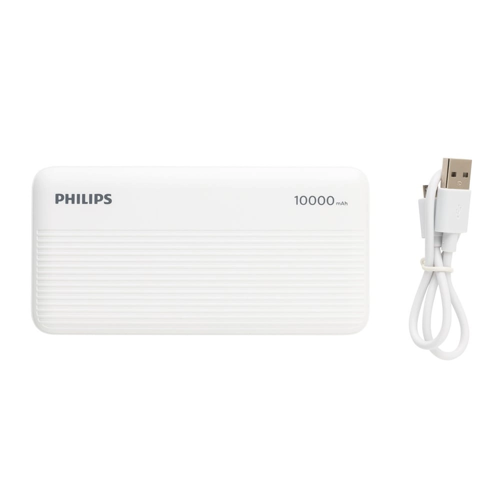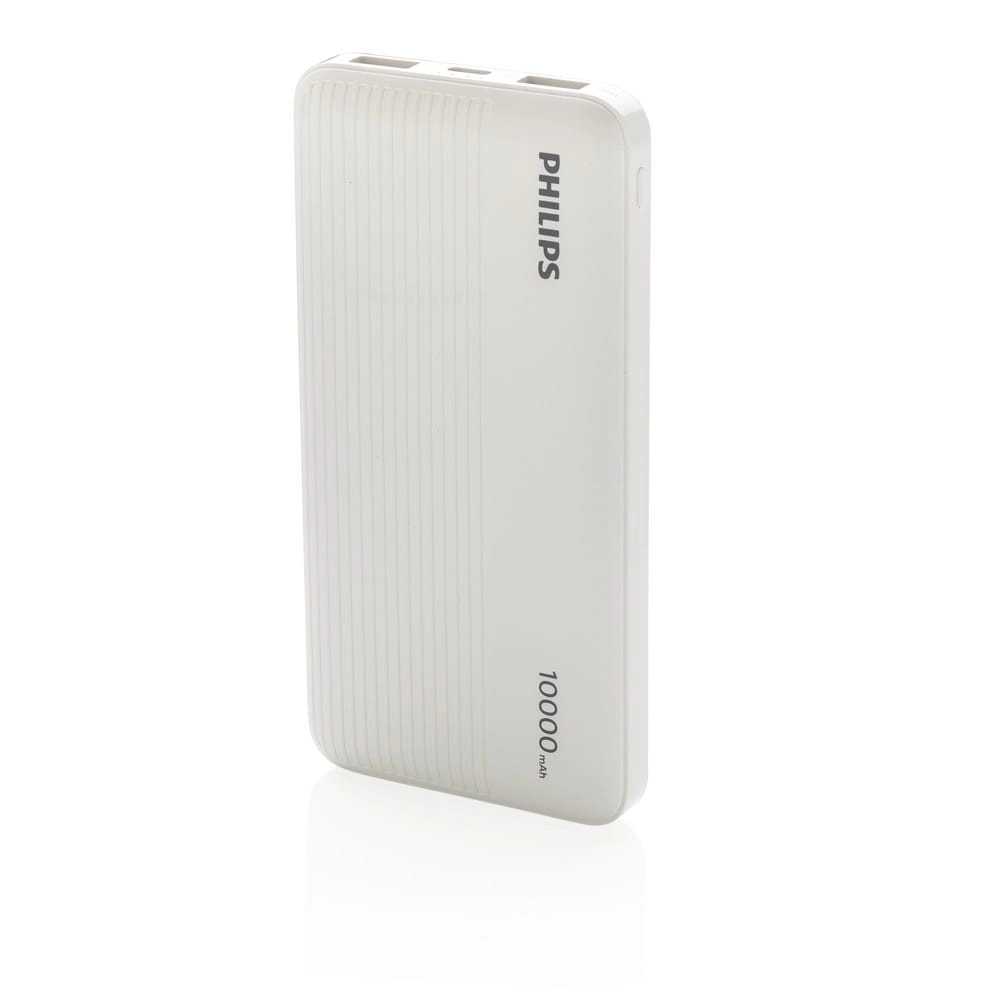Power bank 10000 mAh Philips, diody wskazujące poziom naładowania, dwa wyjścia USB do ładowania 2 urządzeń jednocześnie, trwały, wbudowany akumulator litowo-polimerowy, wejście micro USB 5V/2A, wyjście USB1: 5V/1A, USB2: 5V/2.1A, w ozdobnym pudełku Philips