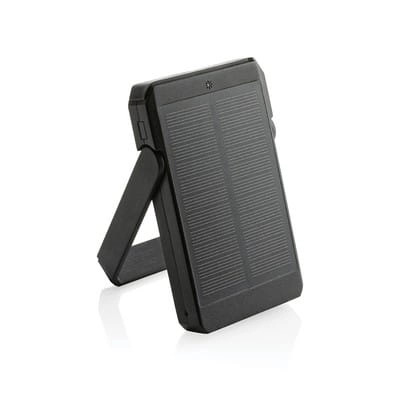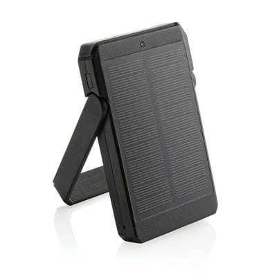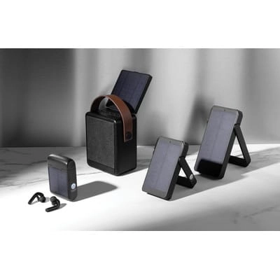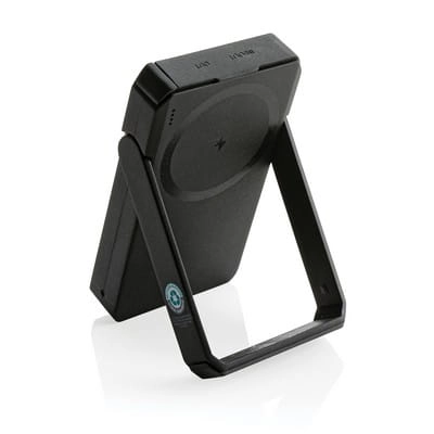 Power bank 5000 mAh z panelem słonecznym, magnetyczna ładowarka bezprzewodowa 10W, wykonany z ABS z recyklingu z certyfikatem RCS, całkowita zawartość materiałów z recyklingu obliczona w oparciu o wagę całkowitą przedmiotu: 21%, szybkość ładowania energią słoneczną 5V/0.13A, wejście 5V/2A, wyjście 5V/2A, kabel z TPE z recyklingu z certyfikatem RCS w komplecie, w pudełku z papieru kraftowego z certyfikatem FSC®, wzór zastrzeżony®