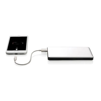 Aluminiowy power bank z trwałą baterią litowo-polimerową 10000 mAh. Ma 2 wyjścia USB i 2 wejścia (micro USB i kompatybilny z urządzeniami iOS), dzięki czemu użytkownicy iOS mogą używać tego samego kabla (nie dołączony) zarówno do ładowania telefonu, jak i do ładowania power banku. Power bank może służyć do ładowania telefonów i tabletów. Lampka wskazuje poziom baterii. Wyjście DC 5V/2.4A, wejście 5V/2A. Kabel micro USB w komplecie.