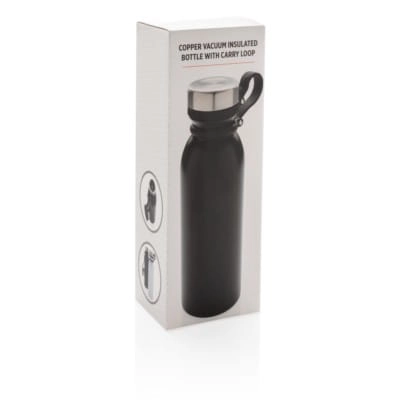 Butelka sportowa 600 ml z silikonowym uchwytem, miedziana izolacja próżniowa, podwójne ścianki z próżnią między ściankami, nie wymaga obsługi oburącz, szczelne wieczko, specjalna konstrukcja zapobiega kondensacji na zewnątrz kubka, utrzymuje temperaturę ciepłych napojów do 8 godzin oraz zimnych do 24 godzin