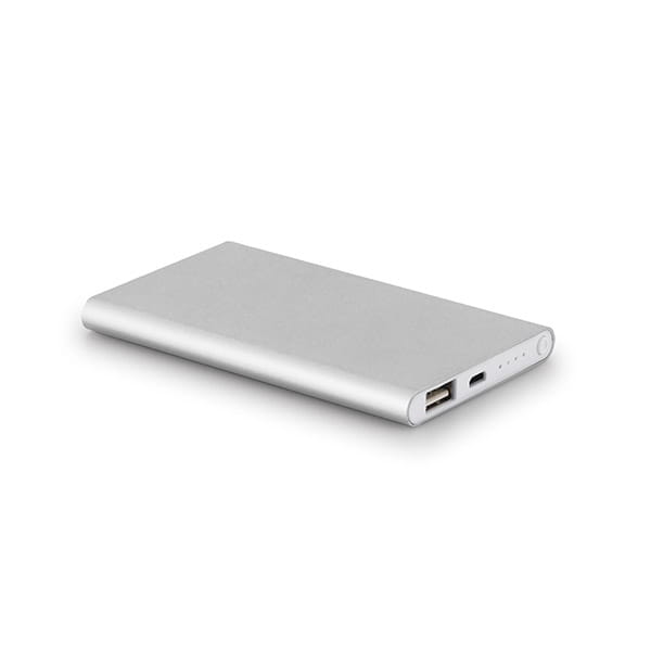 Przenośna bateria. Aluminium. Bateria litowa. Pojemność: 4'000 mAh. Żywotność ? 500 cykli. Wejście 5V/1A - wyjście 5V/1A. Dołączony kabel do ładowania z końcówką USB/micro-USB. Zestaw w pudełku prezentowym.