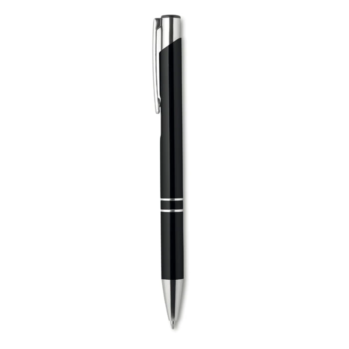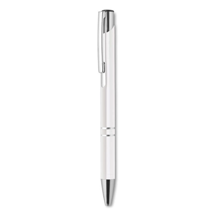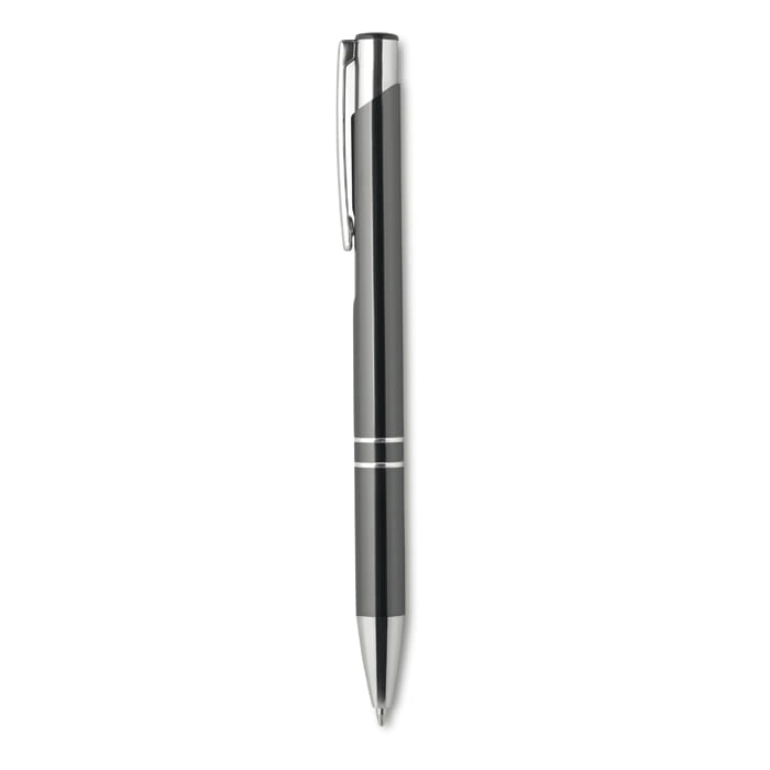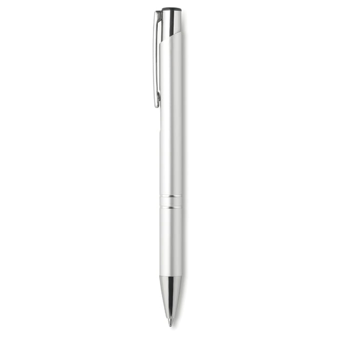 Przyciskany długopis z aluminiowym wykończeniem. Niebieski tusz.
