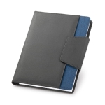 Teczka z notesem. Imitacja skóry i tkanina poliestrowa. Teczka z magnetycznym zamkiem i zewnętrzną kieszenią. Wyjmowany notatnik: 160 czystych stron. Uchwyt na długopis. Dostarczana w etui z materiału non-woven. Długopis nie jest wliczony w cenę.