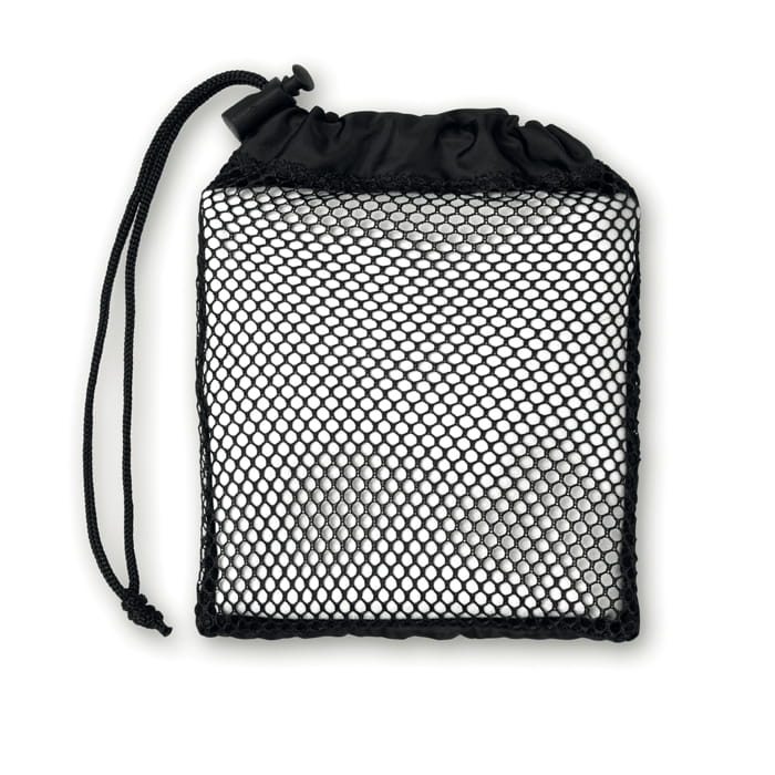 Ręcznik sportowy wykonany z 20% poliamidu i 80% mikrofibry. Zapakowany w woreczek z siatki.