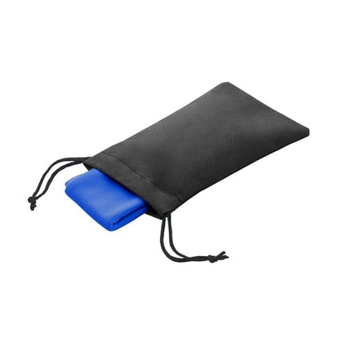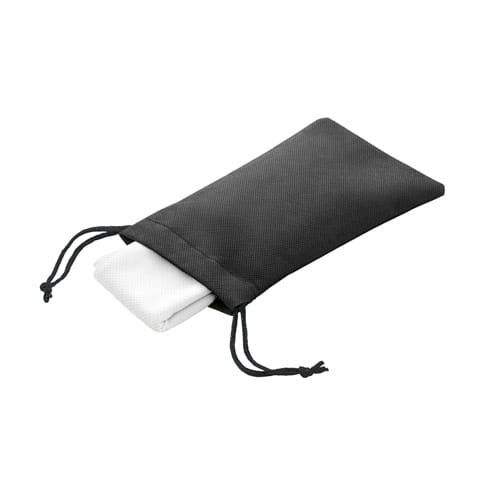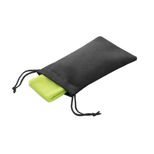 Ręcznik chłodzący sportowym, z RPET. Dostarczany z czarnym etui z non-woven. Ręcznik wielokrotnego użytku, można prać w pralce