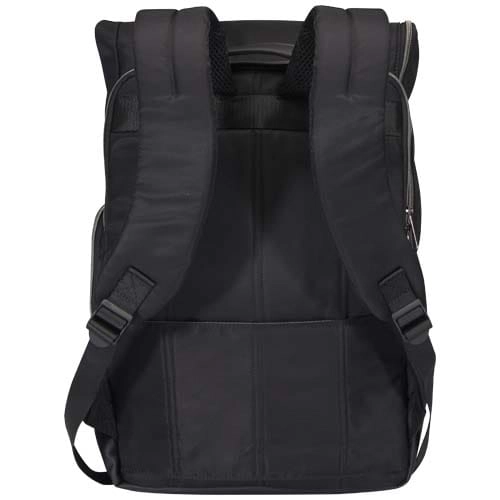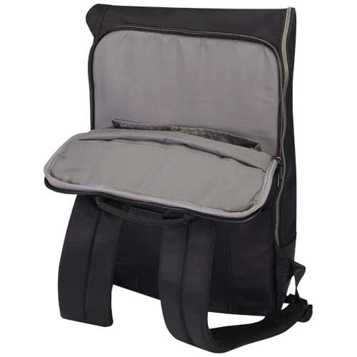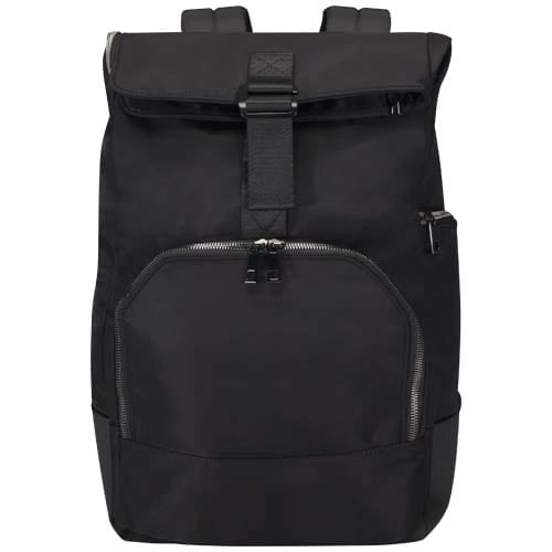 Plecak zwijany Rhine umożliwia płynne przechodzenie od pracy do wypoczynku dzięki swojemu eleganckiemu stylowi i wszechstronności. Wysokiej jakości nylon z recyklingu z certyfikatem GRS, miękka podszewka RPET i elementy z najwyższej jakości skóry PU. Plecak posiada specjalną komorę na laptopa 15” z 2 dodatkowymi kieszeniami na akcesoria elektroniczne, główną komorę z praktycznym wejściem zapinanym na zamek błyskawiczny w kształcie litery L i 2 kieszeniami, przednią kieszeń organizacyjną zapinaną na zamek błyskawiczny oraz kieszeń boczną. Ciesz się maksymalnym komfortem noszenia dzięki wyściełanym i regulowanym paskom na ramiona oraz uchwytowi górnemu pokrytemu poliuretanem. Pojemność: 18 litrów. Wytrzymałość do 10 kg. Wolne od PVC.