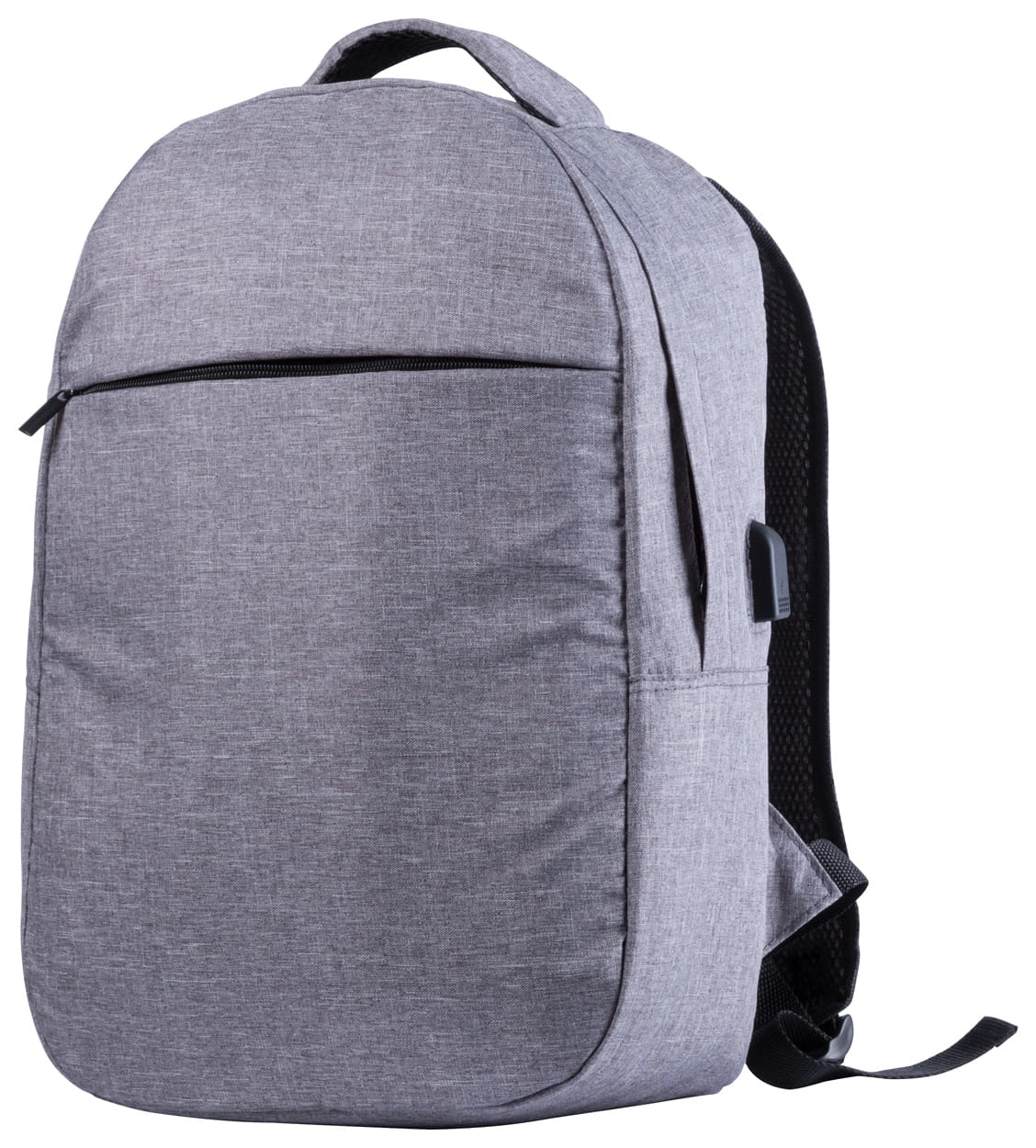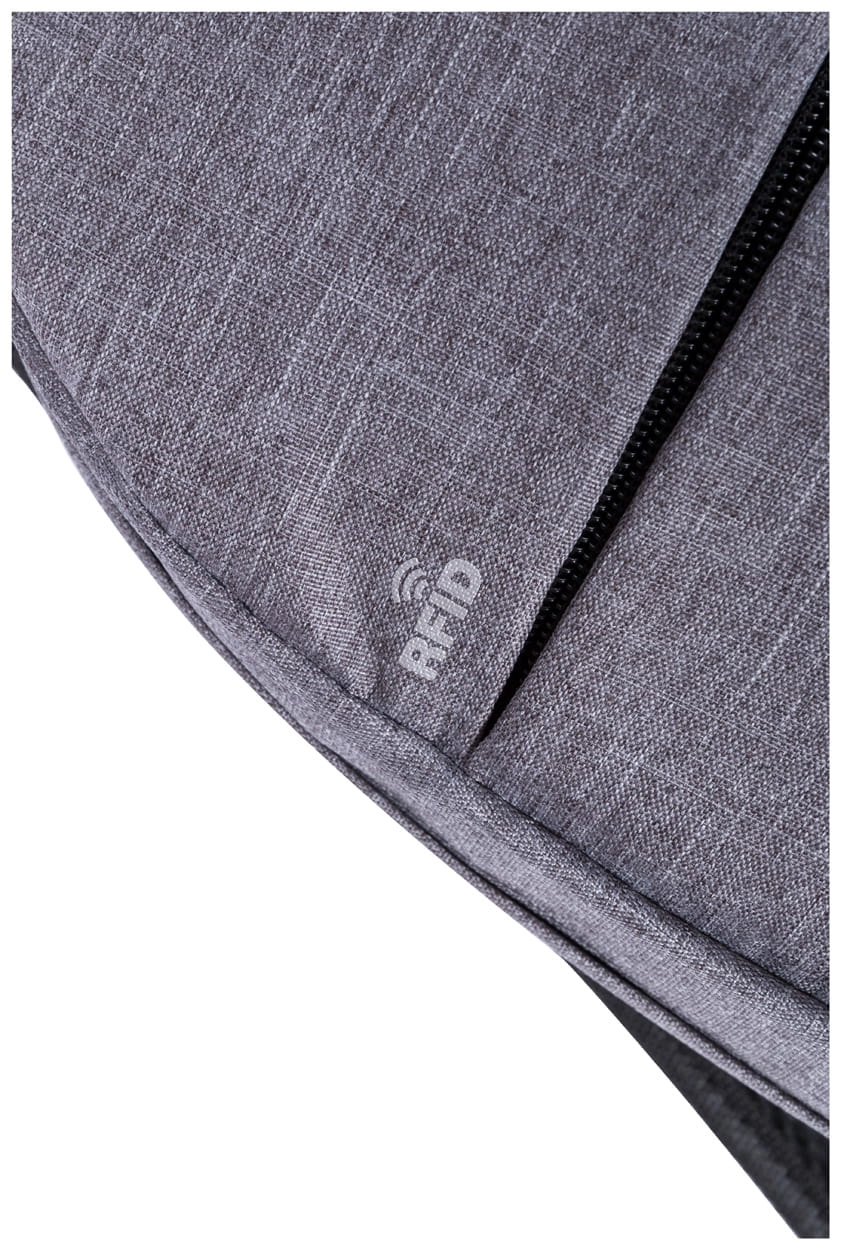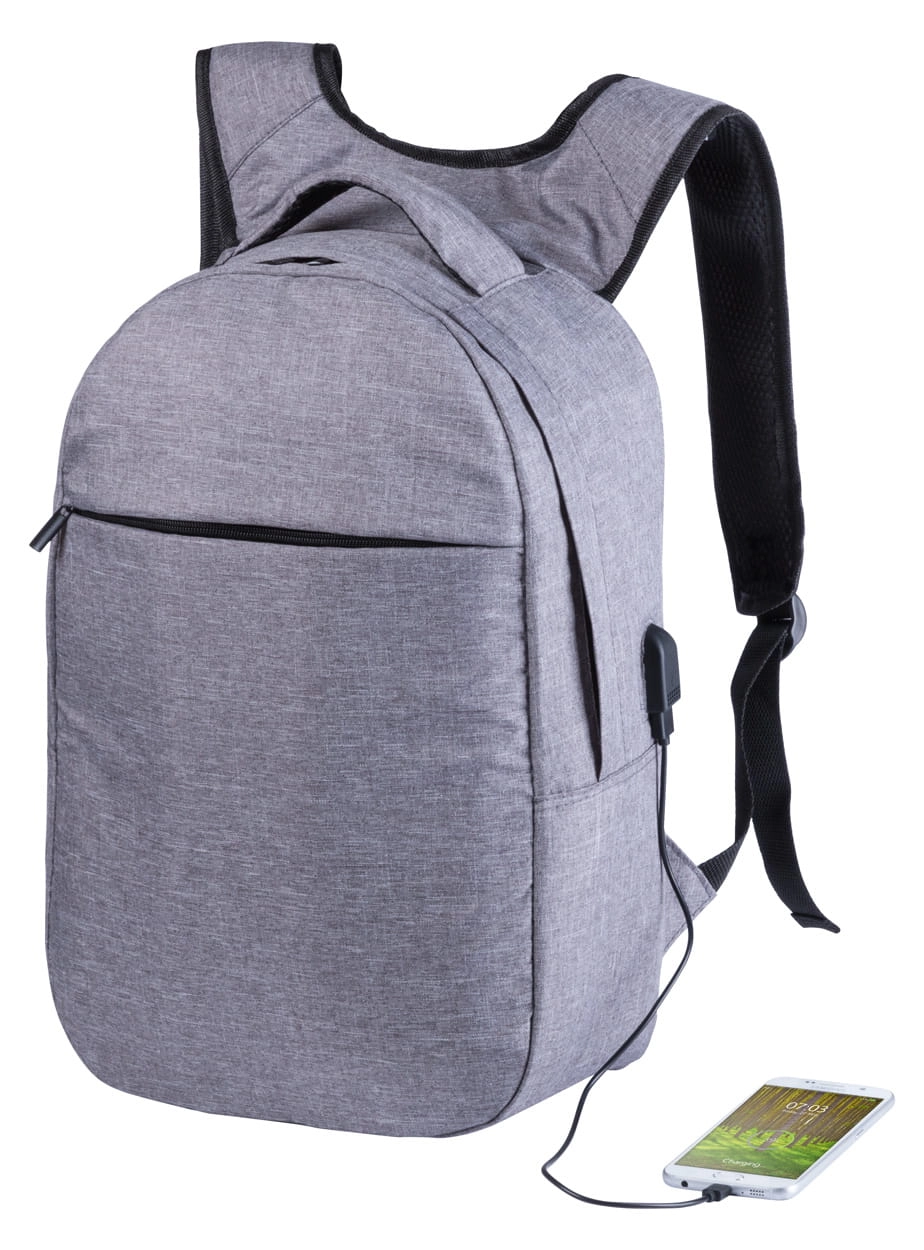 Plecak z ochroną RFID i wieloma przegródkami na zamek błyskawiczny, wyściełaną przegrodą na laptopa (15"), wyściełanymi plecami i paskami na ramiona, Z wbudowanym złączem USB dla powerbanków, poliester 300D.
