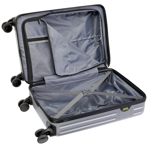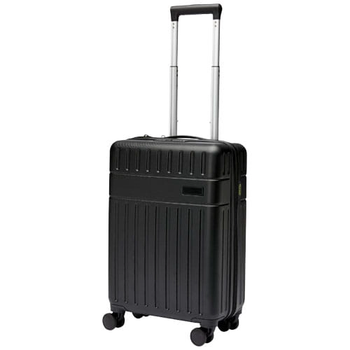 Twarda walizka na kółkach Rover o wysokości 51 cm, wyprodukowana z odpornych na uderzenia tworzyw sztucznych pochodzących z recyklingu i wyściółki RPET to produkt zarówno wysokiej jakości, jak i przyjazny dla środowiska. Posiada aluminiową ramę z podwójnymi rurkami, 4-kołowy mechanizm obrotowy 360 stopni, zintegrowany zamek szyfrowy TSA, wygodny uchwyt zapewniający komfort i wewnętrzne przegródki organizacyjne. Może być przewożona jako bagaż podręczny w większości głównych linii lotniczych. Walizka posiada certyfikat GRS, łącznie z nadrukiem, co sprawia, że jest wyborem bardziej przyjaznym dla środowiska.
