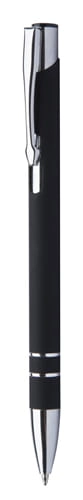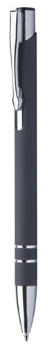 Aluminiowy długopis z gumowanym korpusem i niebieskim wkładem. Idealny pod grawer lustrzany.